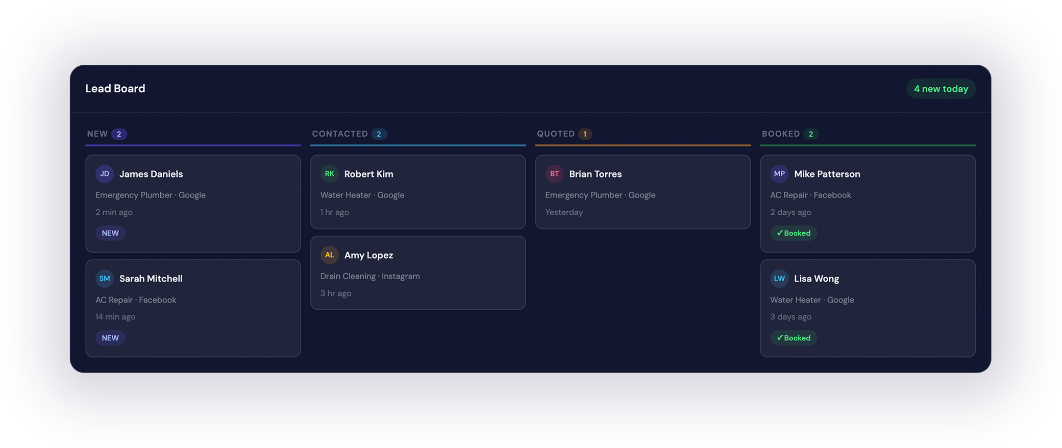 Leads flow straight to your Lead Board.